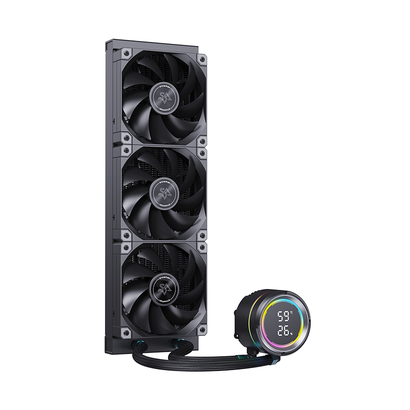 KL360-ARGB 数显版一体式水冷,采用全新的段码屏设计,将极致性能与科技美学完美融合,带来革命性的散热解决方案。KL360-ARGB 数显版围绕水泵顶盖加入了ARGB 氛围灯,提升了整体的视觉吸引力。