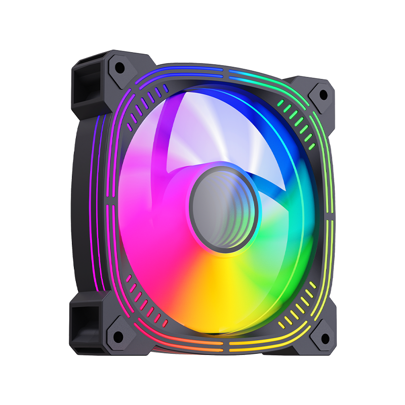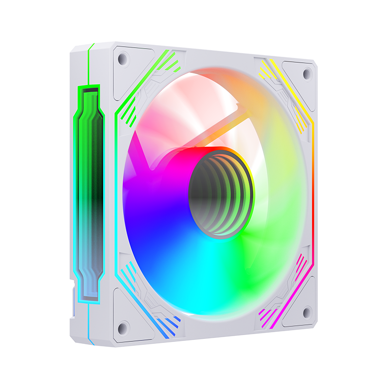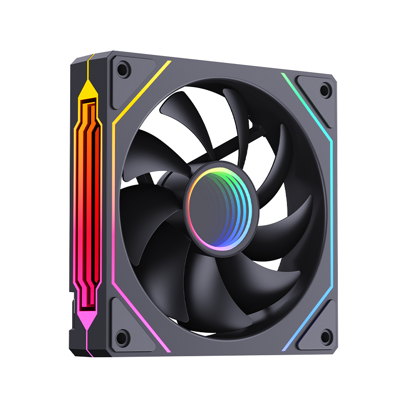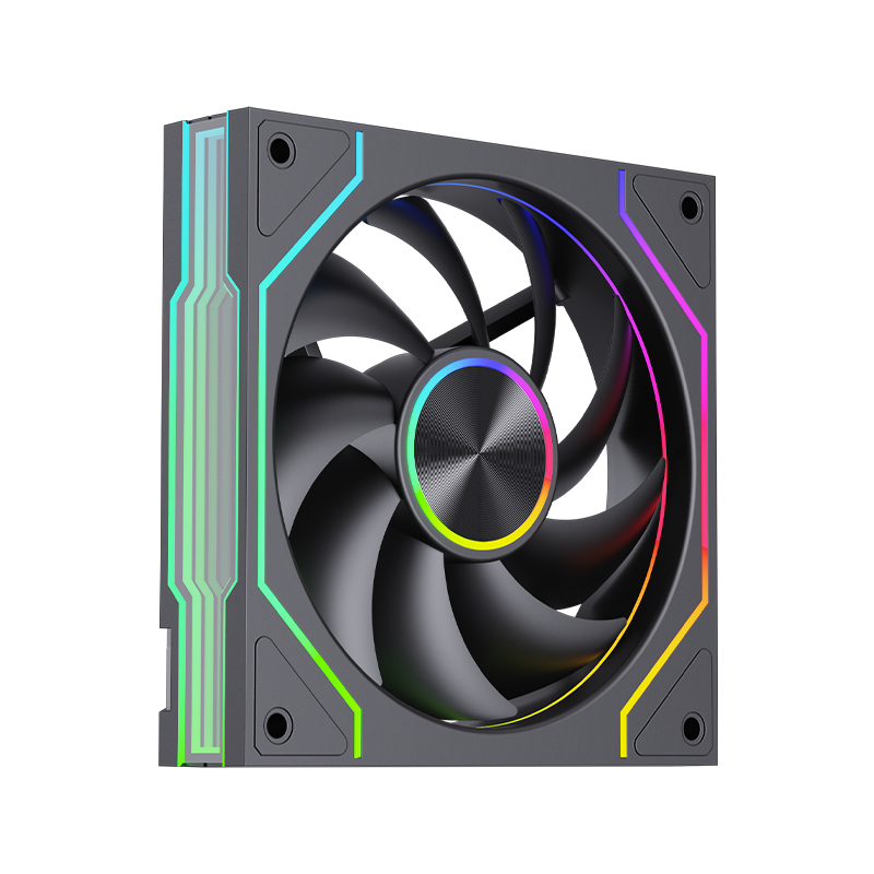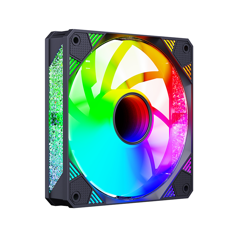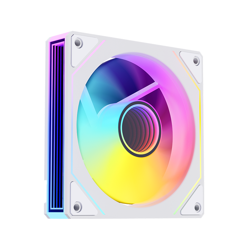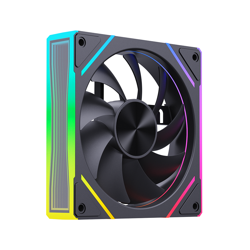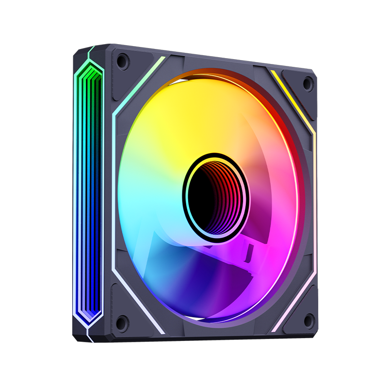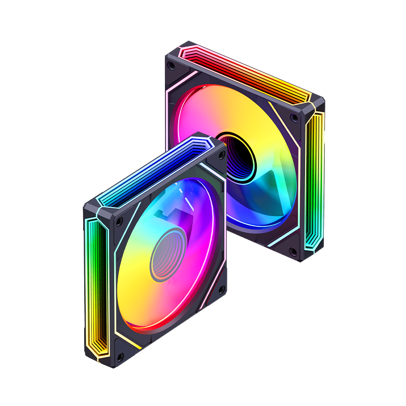 120*25mm风扇,9片扇叶增大风量,ARGB灯光,双侧无限镜,支持神光同步。硅胶脚垫,抗震减噪。