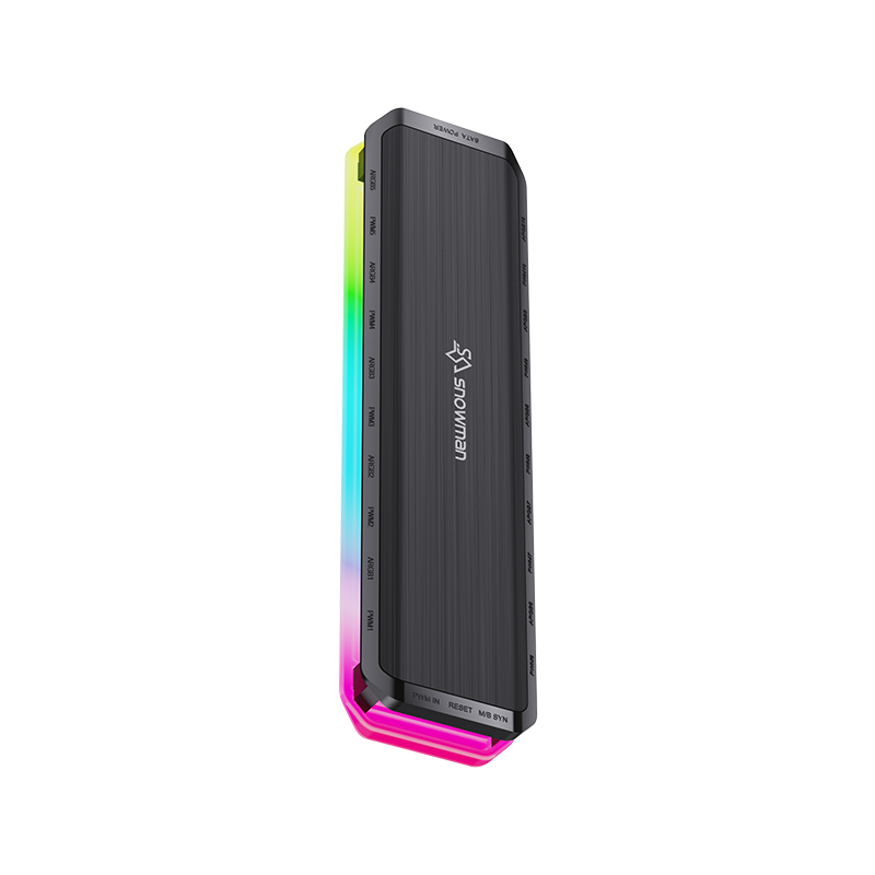 ARGB控制器,无限镜设计,支持主板神光同步,最多支持12个ARGB接口和12个PWM接口,满足更多的ARGB设备接驳。